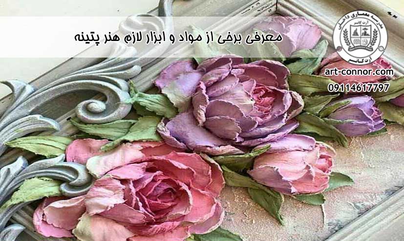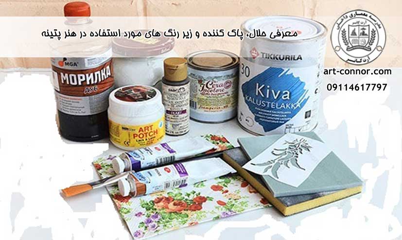 معرفی برخی از مواد و ابزار لازم هنر پتینه : پتینه کاری هنری با بهره گیری از بافت و رنگ های مختلف است، که با ایجاد یک سطح جدا کننده بین جسم اصلی و رنگی که قرار است، روی اجسام قرار گیرد. فنون پتین